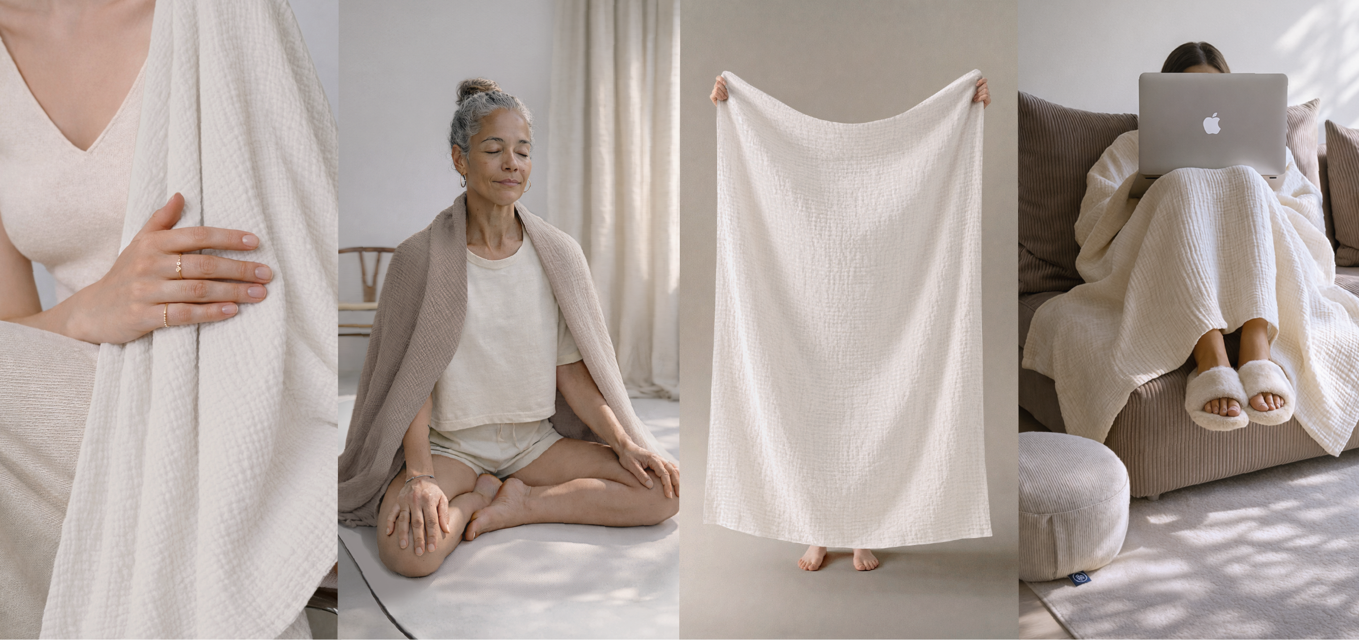 Our new cotton muslin blanket is the perfect combination of lightness, warmth, and natural softness. The 4-layer muslin blanket is made of high-quality cotton muslin and feels exceptionally soft and comfortable against the skin.